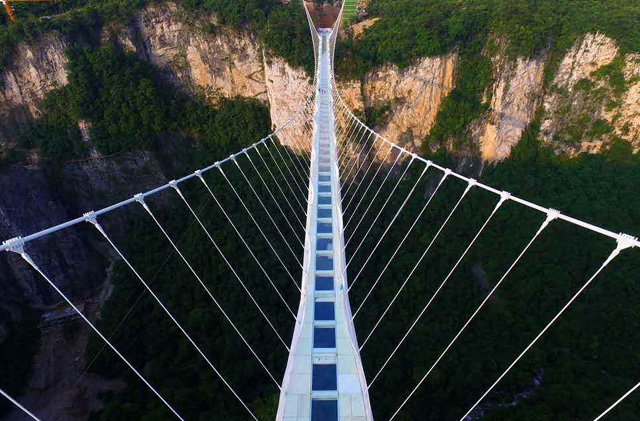 這座玻璃橋位于張家界大峽谷景區,是世界最高(gāo)、跨度最長(cháng)的玻璃橋,大橋建在大峽谷兩側的峰頂上(shàng),橫跨大峽谷,橋拱距谷底相(xiàng)對 高(gāo)度約400米,全長(cháng)約370米,橋面全部采用透明玻璃鋪設,橋中心有全球最高(gāo)的蹦極。站在橋上(shàng),腳下(xià)400米處的谷底全景盡收眼底。玻璃主橋建成後将申 報(bào)吉尼斯世界紀錄。
