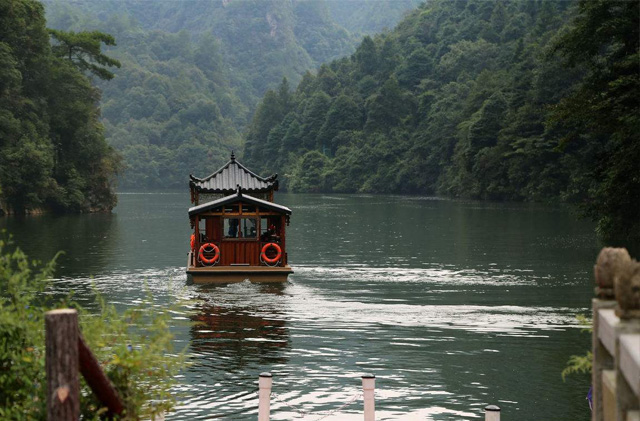 寶峰湖(hú)中有兩座疊翠小(xiǎo)島,近岸奇峰屹立,峰回水(shuǐ)轉。泛舟漫遊,隻見(jiàn)一(yī)湖(hú)綠水(shuǐ)半湖(hú)倒影,充滿詩情畫(huà)意。“雲梯萬丈上(shàng)天台,高(gāo)峽平湖(hú)一(yī)鑒開(kāi),王母瑤池金扶,浣沙仙女下(xià)凡來”遊寶峰湖(hú),你就(jiù)會(huì)欣賞到(dào)這樣的詩情畫(huà)意。群峰擁抱的寶峰湖(hú),長(cháng)約2.,5公裡(lǐ),湖(hú)猶如一(yī)面寶鏡,四面青山,一(yī)泓碧水(shuǐ),蕩槳溫遊,格外惬意。
